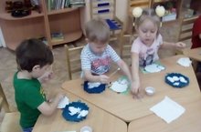 Во второй младшей группе N6 был осуществлен краткосрочный информационно-творческий проект «Птицы-наши друзья». Целью этого проекта являлось знакомство детей с образом жизни и поведением птиц; воспитание сопереживания и сочувствия, желания помочь птицам в трудных зимних условиях. Данный проект включал в себя: -беседы о пернатых друзьях; -наблюдения за ними на прогулках; -рассматривание иллюстраций о птицах; -проведение подвижных игр; -чтение художественной литературы о птицах; -проведение дидактических игр о пернатых; -закрашивание силуэтов птиц; -лепка фигурок птиц; -подкармливание птиц во время прогулок. Итогом данного проекта стала коллективная аппликация под названием «Птички на веточке». В работе использовались такие нетрадиционный материал, как манная крупа и ватные диски. Дети получили большое удовольствие и радость от работы в коллективе. -