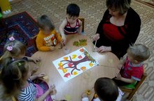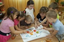 Дети из 8 группы вместе с воспитателем Даминовой Гульнур Фасхутдиновой делает поделку золотая осень