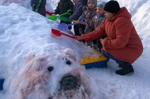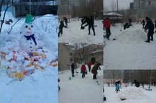 Зима - чудесное время года! Игры со снегом одно из любимых занятий детей. Родители старшей группы № 1 вместе с детьми построили горку и снежные фигуры, а затем покрасили.