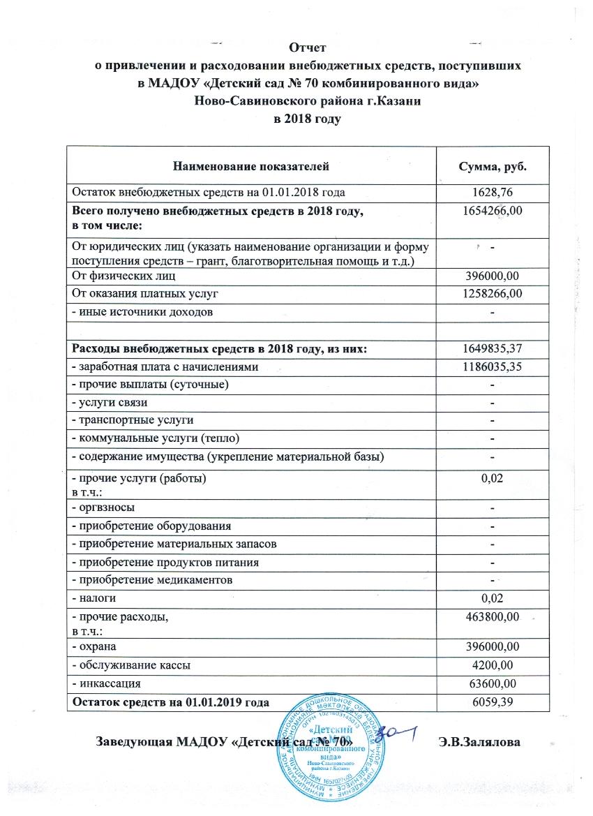 Отчет о привлечении и расходовании внебюджетных средств за 2018 год