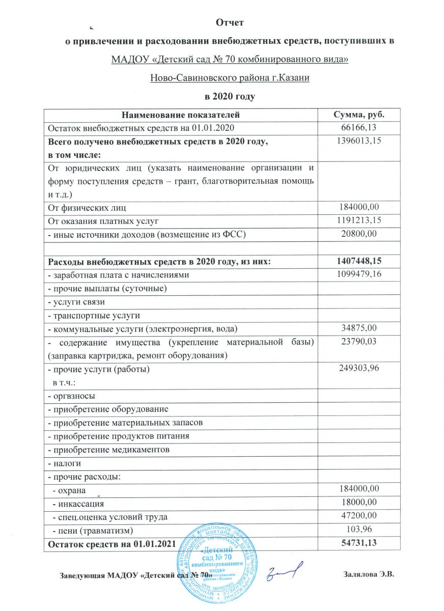 Отчет о привлечении и расходовании внебюджетных средств за 2020 год
