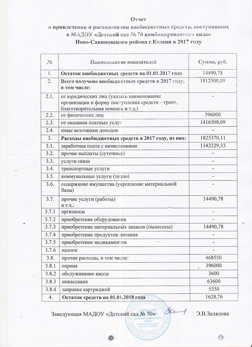 Отчет о привлечении и расходовании внебюджетных средств за 2017 год