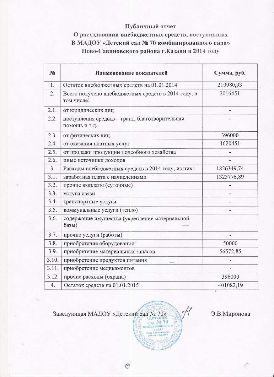 Отчет о привлечении и расходовании внебюджетных средств за 2014 год