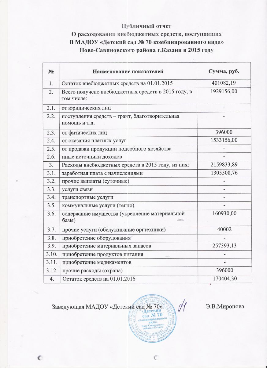 Отчет о привлечении и расходовании внебюджетных средств за 2015 год