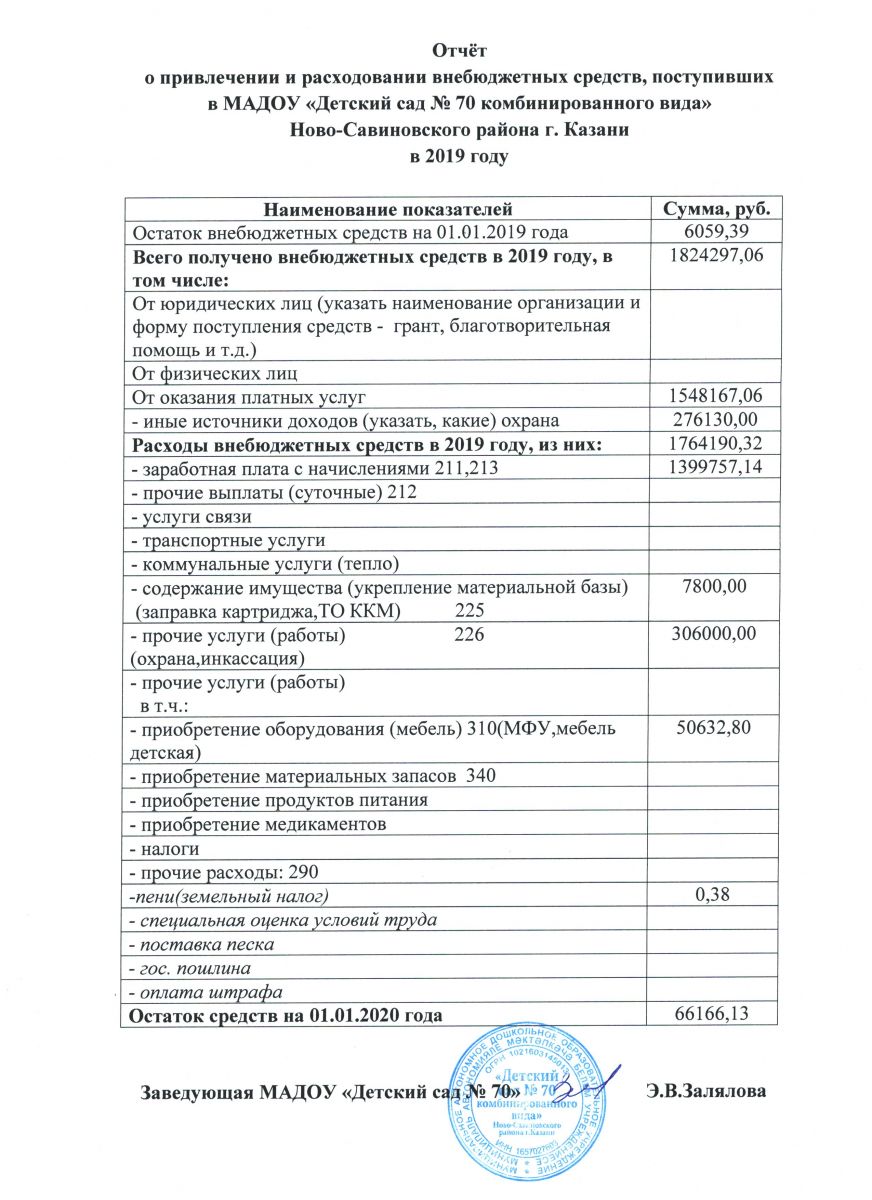 Отчет о привлечении и расходовании внебюджетных средств за 2019 год