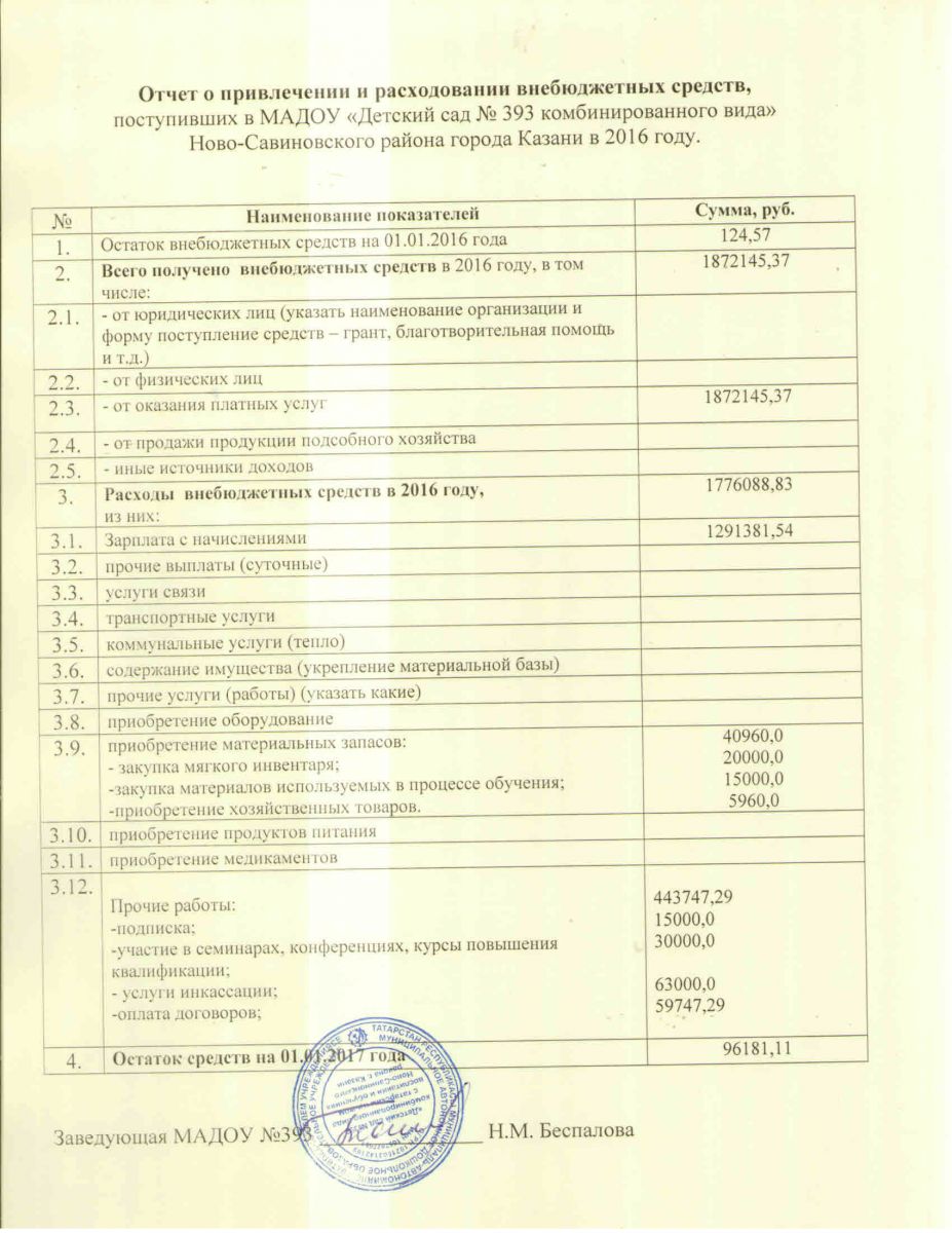отчет о привлечении и расходовании внебюджетных средств в 2016г.