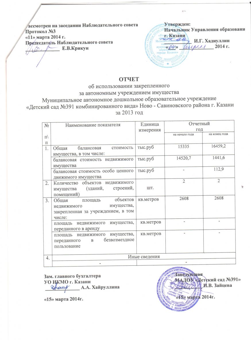 Отчет об использовании закрепленного за автономным учреждением имущества за 2013 год