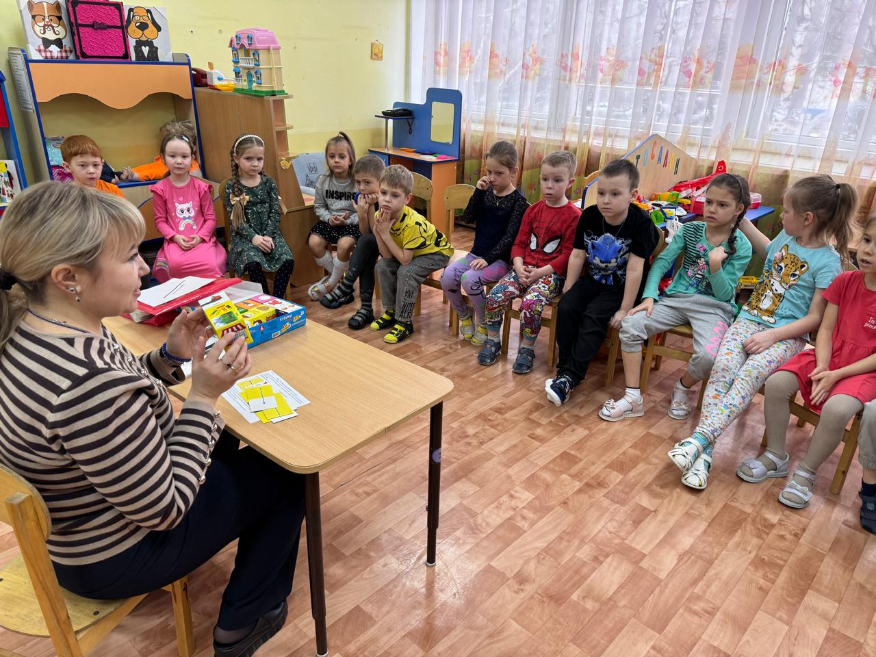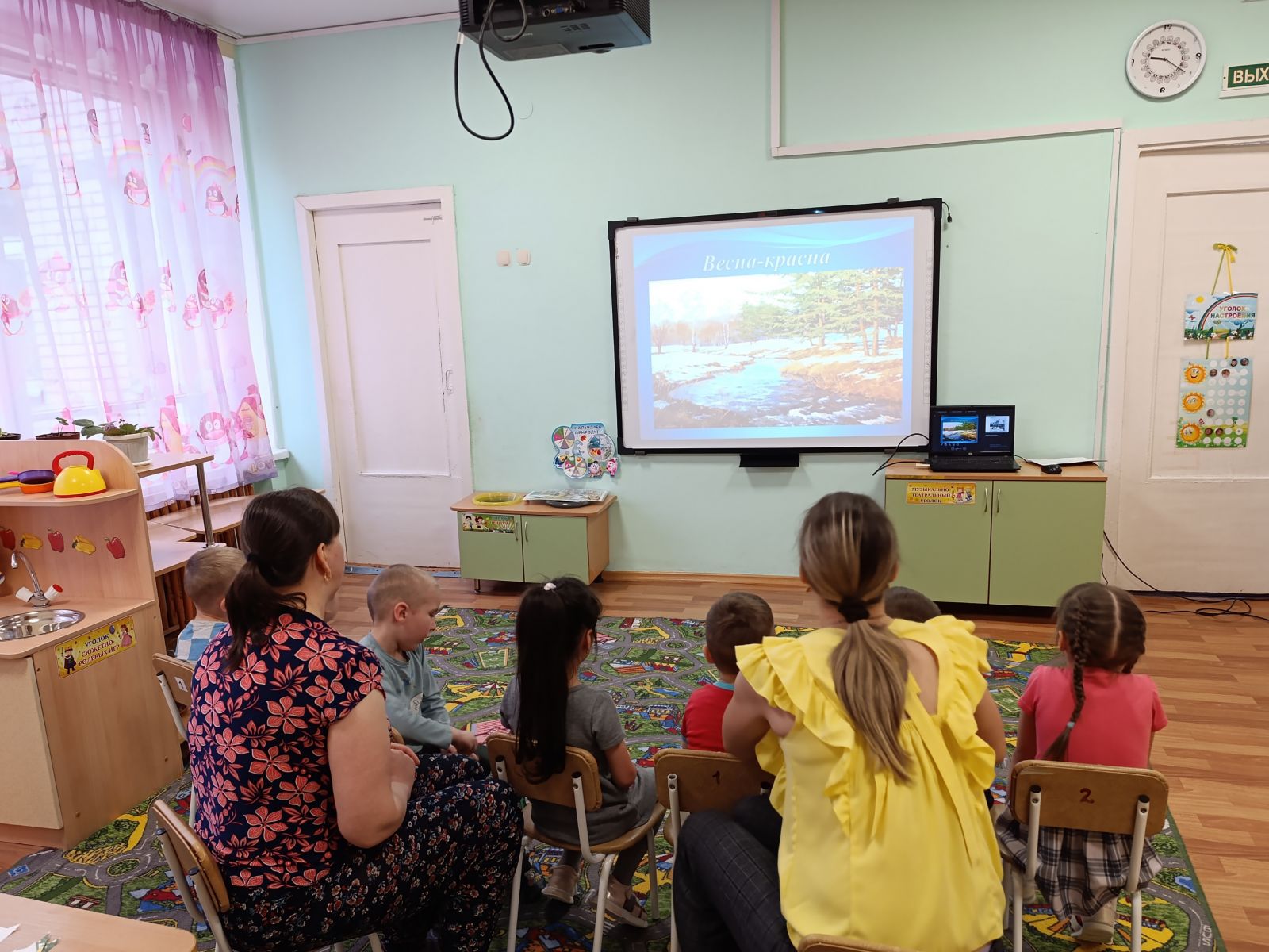 В средней группе воспитатель Анастасия Александровна провела открытое занятие по развитию речи «Весна пришла». Дети закрепили знания о сезонных изменениях, учились отвечать на вопросы, используя картинки-подсказки.