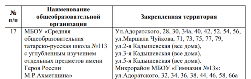 О закреплении муниципальных образовательных организаций за конкретными территориями города Казани