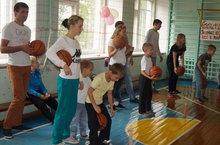 Соревнования по воллейболу между командами учащихся и родителей школы.