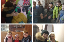 Поздравления, добрые слова благодарности с пожеланиями благополучия и здоровья, угощения к чаю дарят наши ребята уходящему поколению победителей.