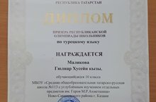 Поздравляем ученицу 10 "Б" класса Маликова Гюлнар Хусейн кызы, которая стала призером республиканской олимпиады по турецкому языку.