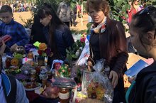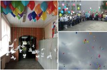 Учащиеся нашей школы выпустили в небо шары с бумажными голубями, на которых были написаны имена погибших родственников, принимавших участие в Великой Отечественной войне.