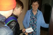Учащиеся нашей школы разносят пригласительные участникам ВОВ на мероприятие по вручению памятного подарка от имени Президента Республики Татарстан Р.Н.Минниханова.