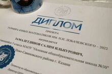 Наш ученик 4В класса Замалетдинов Салим стал призером турнира юных математиков им. Н.И.Лобачевского - 2022.«Турнир юных математиков» прошёл энергично, на высочайшем организационном, техническом и творческом уровне, в удивительно доброжелательной обстановке.