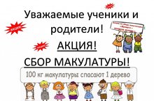 С 16.09 - 21.09 в школе объявляется чемпионат по сбору макулатуры среди 1-6 классов.