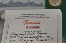 15 апреля 2017 года прошла XI Республиканская гуманитарная научно-практическая конференция "Глобализация-реальность современного мира". Исследовательские проекты, представленные на конференции обучающими 4-5 классов Габидуллиной А., Озбаян А., Гайнуллиным А. были высоко оценены экспертным жюри. Поздравляем наших ребят с достойным участием! Гордимся вами!