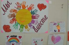 Первый день в лагере прошёл на тему "Мир добрых сердец".Вожатые в отрядах побеседовали о доброте.Ребята нарисовали рисунки и стенд.