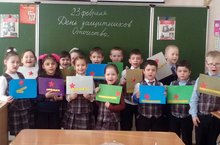 Поздравительные открытки с 23 февраля подготовили учащиеся 1 б класса для пап и дедушек