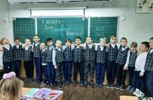 На фото 1А с классным часом «Когда мы едины, мы непобедимы» -