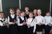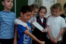 Учащиеся 1 А класса приняли участие в празднике, посвящённого дню рождения магазина "Бюрократ". Ребята сделали поздравительные открытки и представители этого магазина наградили их памятными подарками