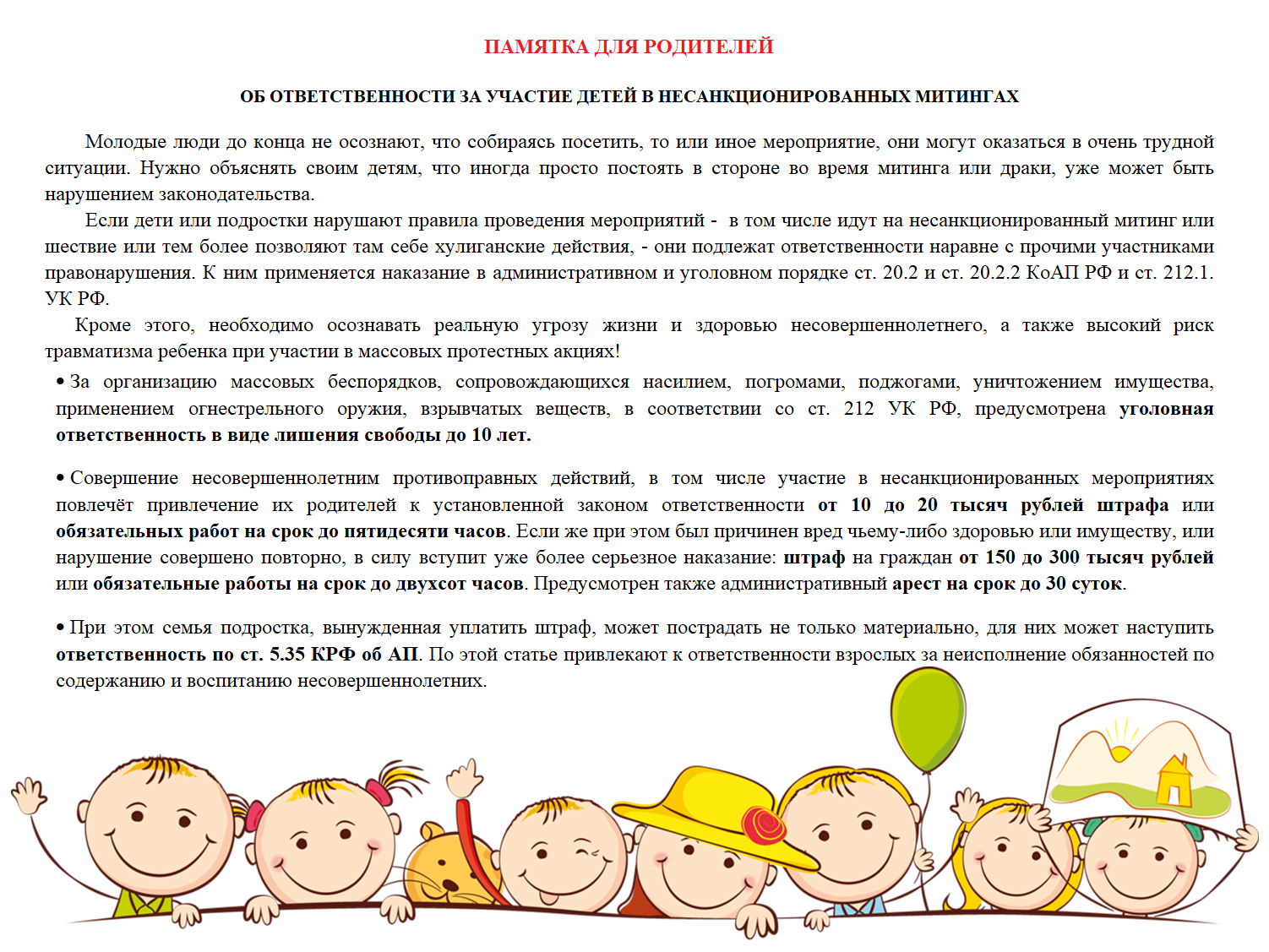 Далеко не все подростки знают о том, с какого возраста наступает административная и уголовная ответственность. Предлагаем вашему вниманию памятки для детей и взрослых.