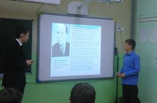 Политинформация об освобождении Освенцима, проводит ученик нашей школы для своих одноклассников