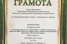 Поздравляем ученицу 10 класса Галимову Ралину (науч.рук. Бурганова Т.Н., Ярунова А.С.) с 1 местом в муниципальном этапе всероссийского конкурса социальных проектов "Нашу жизнь мы строим сами".