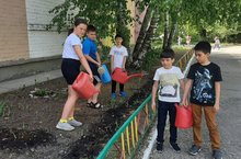 Ученики 3а класса вырастили рассаду георгин и бархатцев, высадили на клумбы. Продолжают за ними ухаживать.