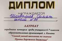 Поздравляем лауреата городского конкурса "Самый умный школьник по знанию ПДД"