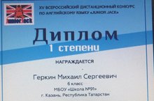 Ученики 6Б класса участвовали во Всероссийском конкурсе по англ.яз « Junior Jack”. Все ребята получили бесценный опыт, сертификаты, а Геркин Миша смог набрать максимальные баллы и занял 1 место в своей возрастной группе.