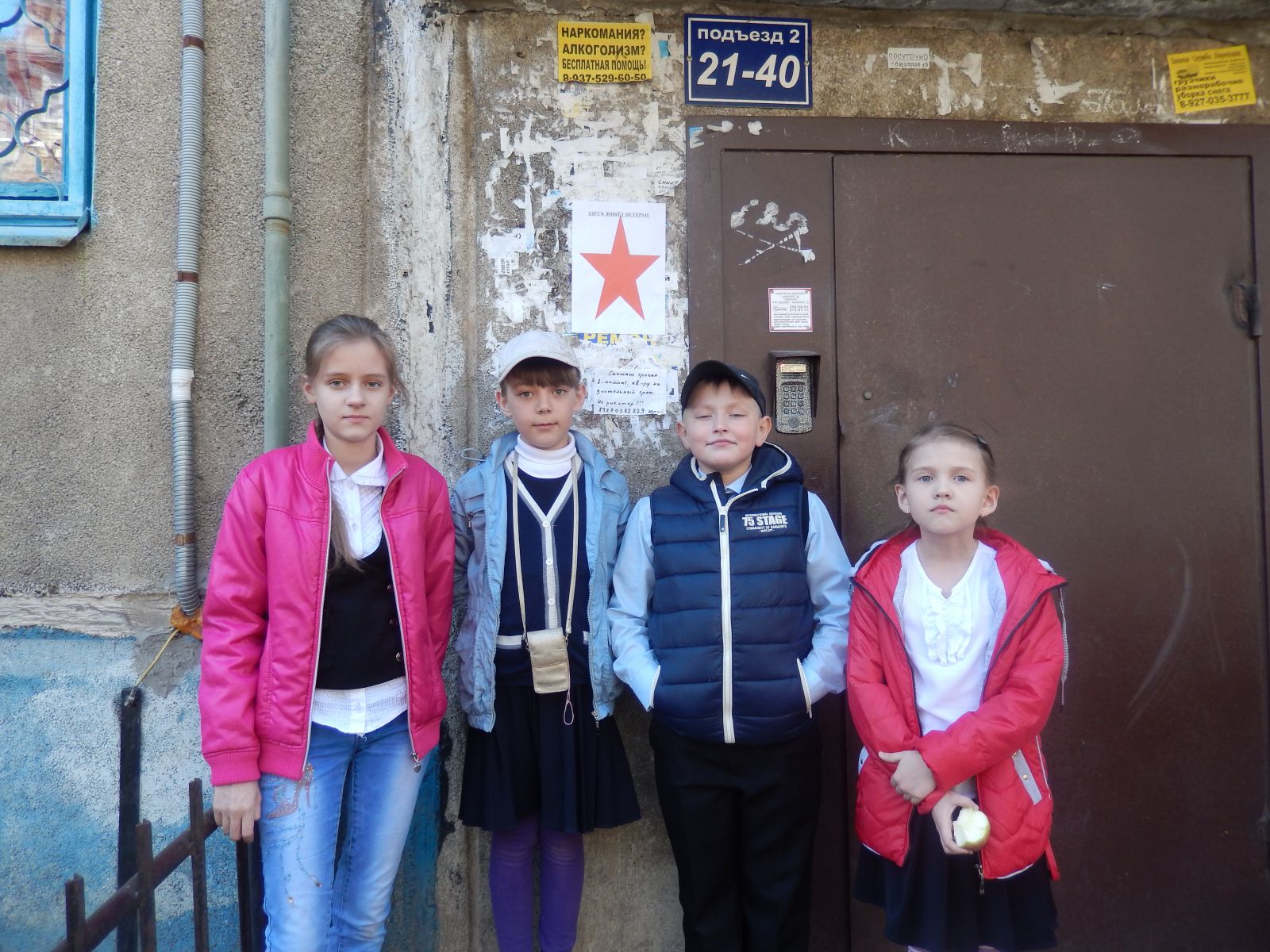 4) Учащиеся 4Б класса  посетили ветерана Великой Отечественной войны. На подъезде была прикреплена  Звезда Победы. Все жители этого дома должны знать,  в их доме  живёт ветеран Великой Отечественной войн
