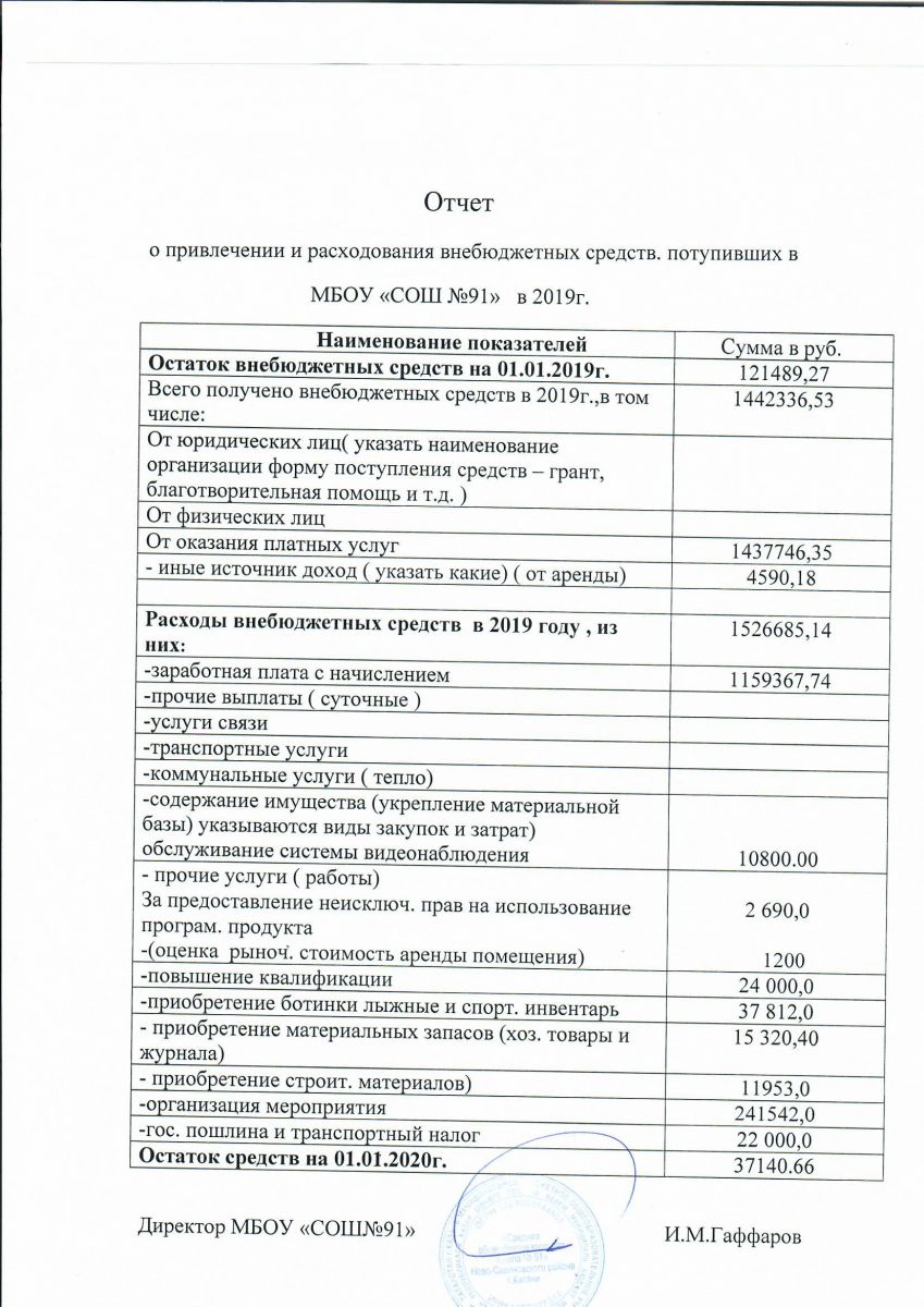 Отчет о привлечении и расходовании внебюджетных средств за 2019 год