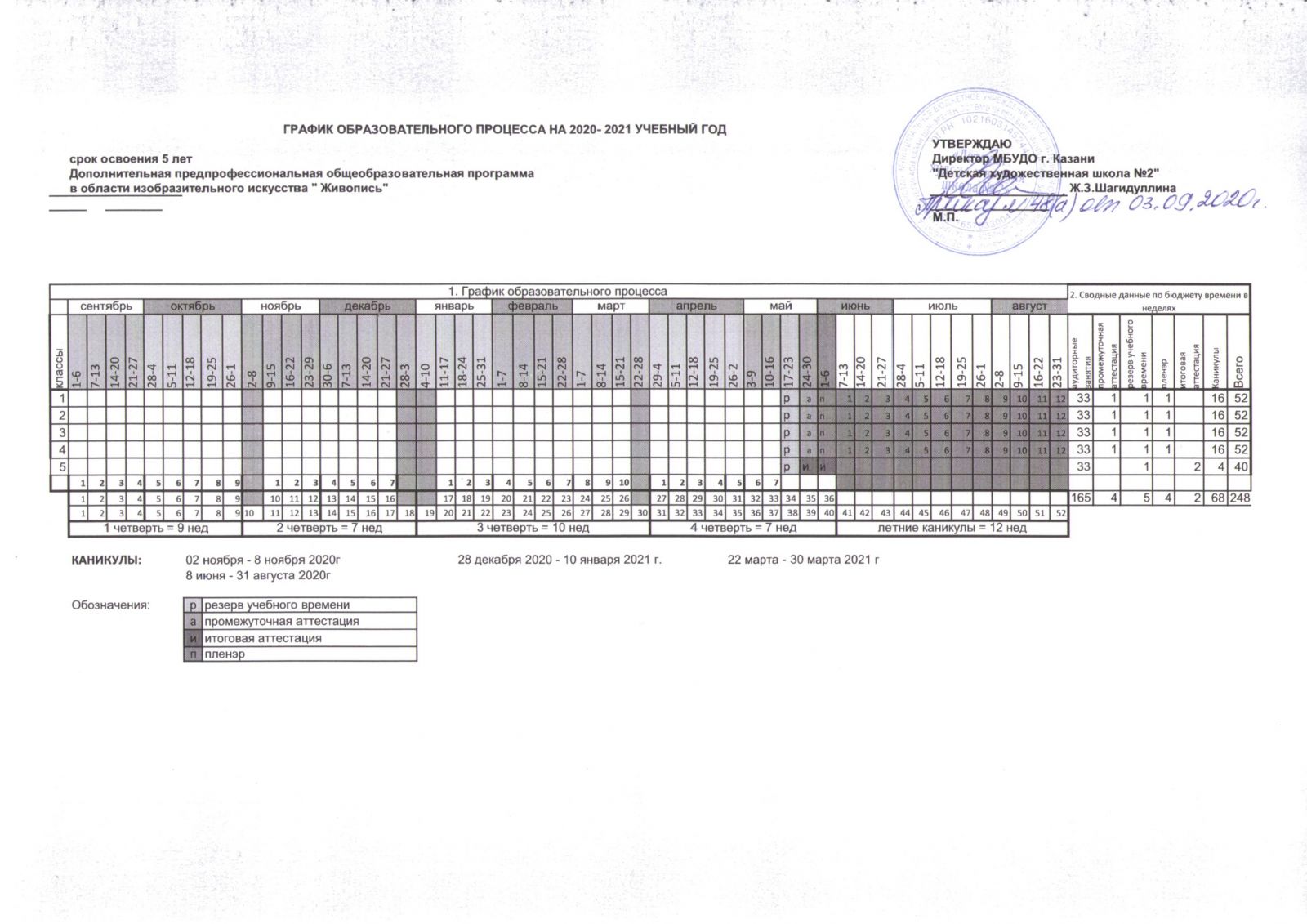 График образовательного процесса на 2020-2021 учебный год