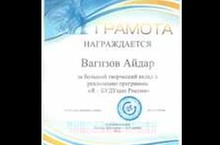 Поздравляем ученика 8 А класса Вагизова Айдара с грамотой за большой творческий вклад в реализацию программы "Я - БУДУщее России" !