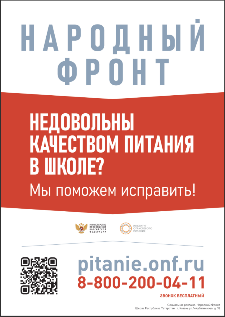 QR-код горячей линии по школьному питанию Народного Фронта и Минпросвещения России