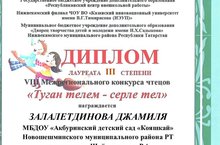 - "Туган телләр һәм халыклар бердәмлеге елына багышланган шигырь бәйгесендә 3нче урын яулаучы Җәләлетдинова Җәмилә Җәүдәт кызы." 17.02.2021