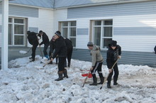 Акбүре мәктәбе укучылары мәктәп территориясендәге карларны чистарттылар.