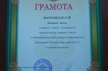 Акбүре мәктәбенең 7 сыйныф укучысы Закирова Ләйлә Вахит кызы "Скажем - коррупции нет!" район конкурсында сочинение - эссе язып 3 урынны яулады. Ул грамота белән бүләкләнде. Без аны котлыйбыз һәм уңышлар телибез.