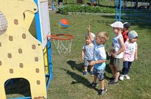 Используем с детишками элементы игры в баскетбол на участке детского сада, как средство развития действий с мячом. Игра и движение-естественный спутник жизни наших детей, источник радостных эмоций, а в летний солнечный денёчек и настроение у всех по особому радостное. 02.08.2022
