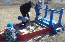 Родители на среднике. Готовим клумбочки. 10.04.2019