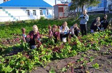 Сбор урожая на пришкольном участке.