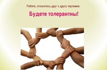 Международный день, посвящённый терпимости — ежегодно отмечается 16 ноября. Этот Международный день был торжественно провозглашён в «Декларации принципов терпимости» ЮНЕСКО. Декларация была утверждена в 1995 году на 28-й Генеральной конференции ЮНЕСКО. В нашей школе проделись классные часы на тему: «Будьте толерантны!»