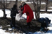 Без бүген мәктәп укучылары белән берлектә бакчада кардан ачылган урыннарны чүп-чардан арындырдык.Бу әле эшнең башы гына,алда эшләнәсе эшләр бик күп.