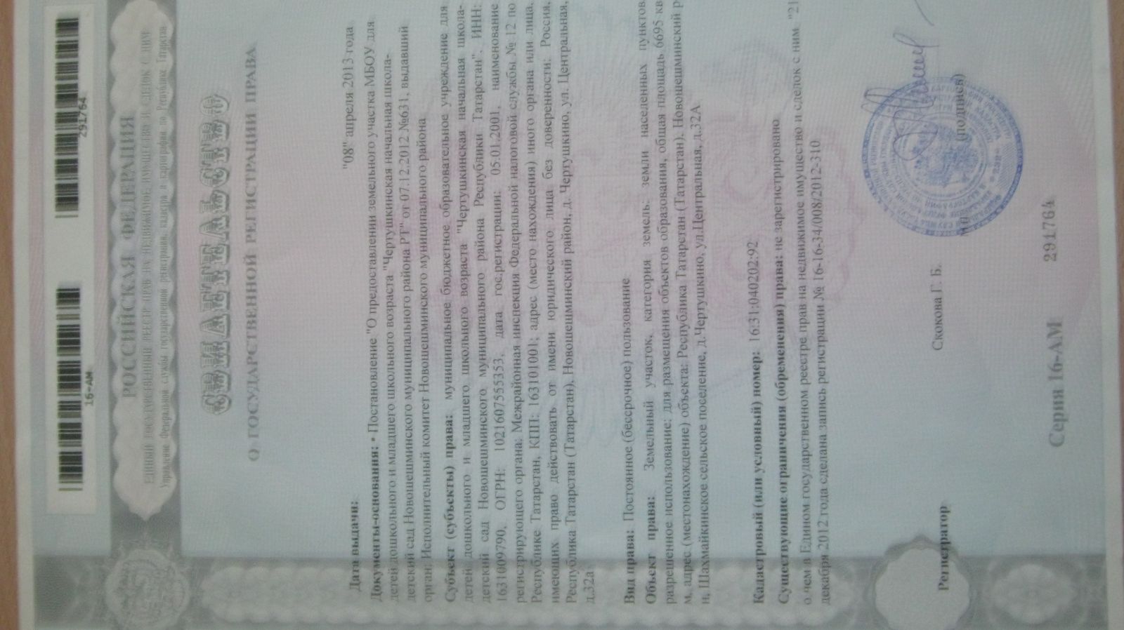 Свидетельство на землю