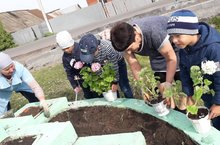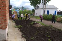 Ребята с большим интересрм принимают участие в посадке цветов на территории детского сада