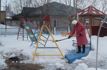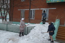 На всех участках детского сада идет очистка оборудования от тающего снега
