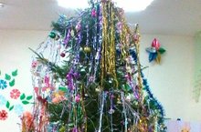 Привезли красавицу, елку. Мы ее украсили, завтра в 9.00 будет праздник новогодний у детей. 24.12.2015