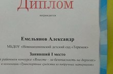 Емельянов Александр занял поченое 1 место в муниципальном конкурсе "Вместе за безопасность