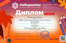 Финагентов Артур участник Всероссийского конкурса "Лабиринты" по математике.